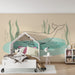 Погледнете в морския свят с този тапет за деца, изобразяващ мащабна китка, която плува спокойно в тюркоазени води. Обградена от нежни водни растения, тази минималистична илюстрация придава елегантност и спокойствие на стаята на вашето дете.