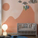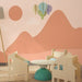 Превърнете стаята на вашето дете в успокояващо пространство с този стенен тапет с минималистичен дизайн на стилизирани планини. Нежните розови и бежови тонове създават спокоен атмосфер, идеален за поощряване на почивката и съня на малките.