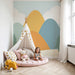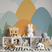 Превърнете стаята на вашия малък авантюрист с този тапет за деца, изобразяващ спокоен планински пейзаж. Планините в нежни цветове като оранжево, зелено и синьо се издигат величествено под пастелно небе, създавайки спокоен и уютен атмосфер.