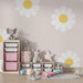Този цветен дизайн призовава лекотата на пролетта и носи допир на природа вътре. Всяка маргаритка е внимателно изобразена, за да предложи игрив и радостен вид, идеален за стимулиране на въображението на вашето дете. Хармонията на нежните цветове допринася за спокоен фон, идеален за сън и игра.