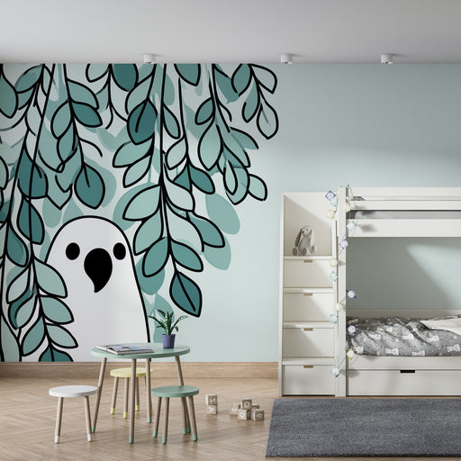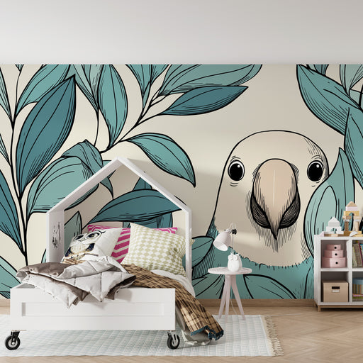 KidsWallTransformez la chambre de votre enfant en un lieu enchanteur avec ce papier peint pour enfants représentant un oiseau espiègle caché parmi des feui...