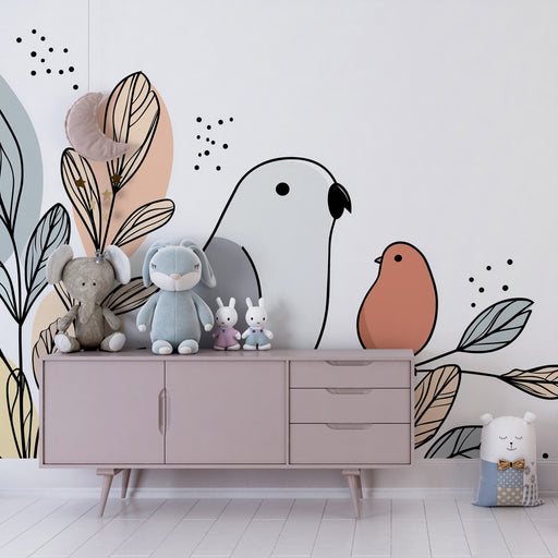 KidsWallCréez un espace tranquille et inspirant pour votre enfant avec ce papier peint pour chambre d'enfant représentant des oiseaux charmants perchés sur...