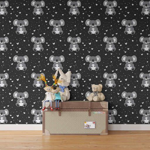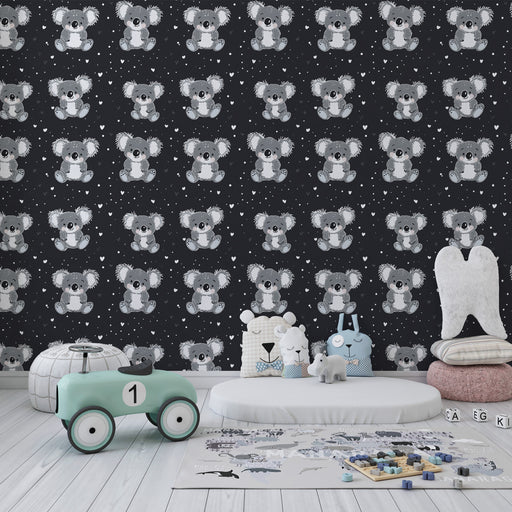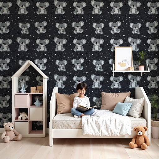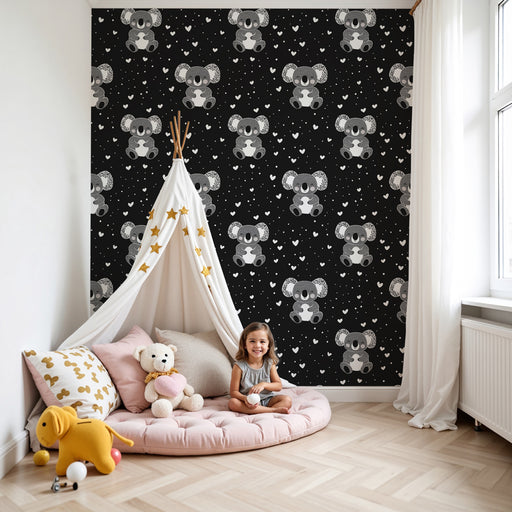 Afficher tous les détailsPapier peint chambre enfant à motifs | Adorables koalas sur fond noir