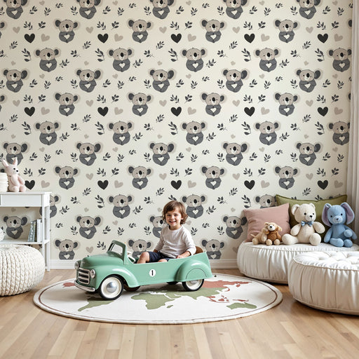 KidsWallTransformez la chambre de votre enfant en un havre de douceur avec ce papier peint pour chambre d’enfant orné de charmants koalas. Sur un fond gris...