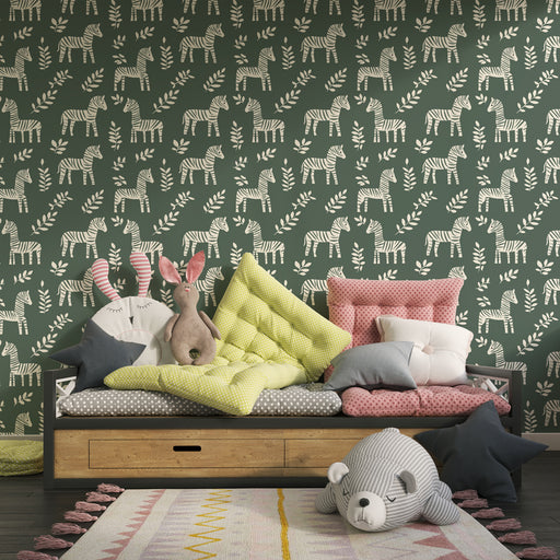 Afficher tous les détailsPapier peint chambre enfant à motifs | Zèbres mignons sur fond vert