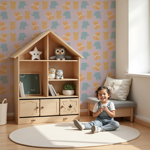 KidsWallTransformez la chambre de votre enfant en un univers chaleureux et ludique avec ce papier peint pour chambre d enfant. Orné de petites têtes d'anim...