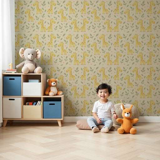 KidsWallLaissez votre enfant s’évader dans la savane avec ce papier peint pour chambre d’enfant, où de gracieuses girafes évoluent parmi une végétation lux...
