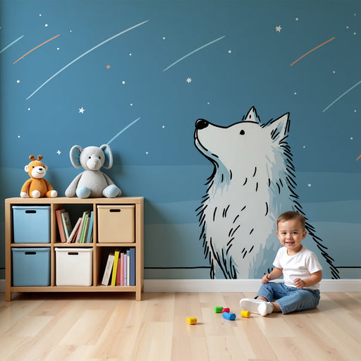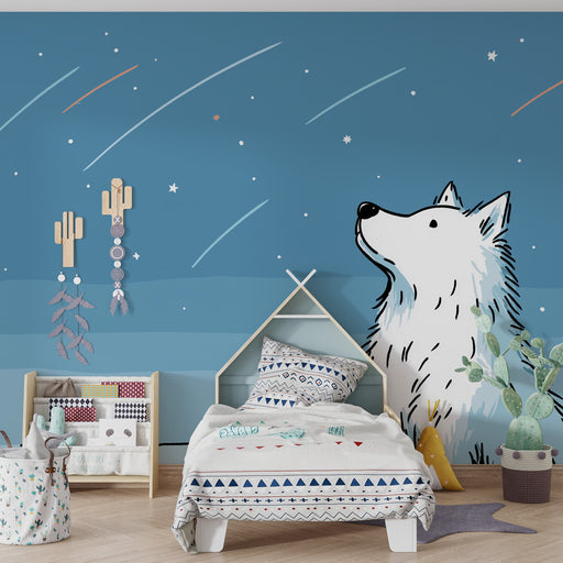 Afficher tous les détailsPapier peint chambre enfant | Loup sous les étoiles