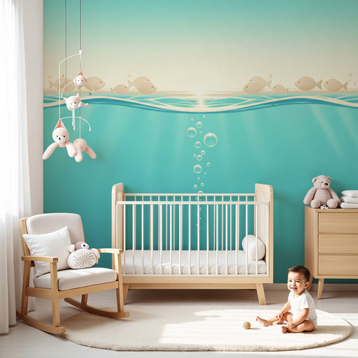 KidsWallPlongez dans un univers aquatique apaisant avec ce papier peint pour bébé représentant des poissons joyeux nageant parmi des bulles scintillantes. ...
