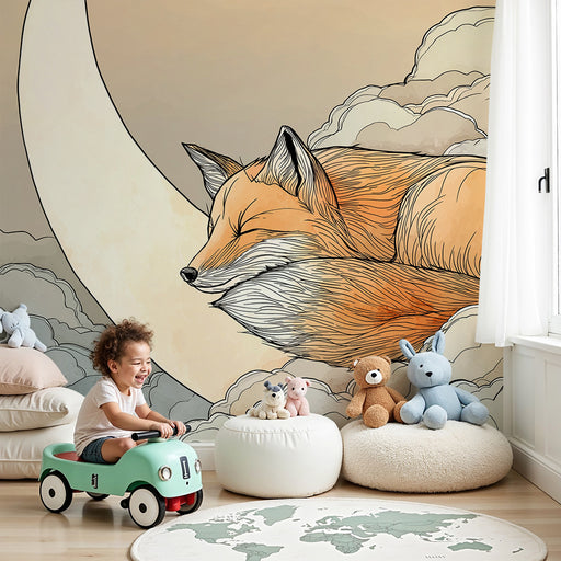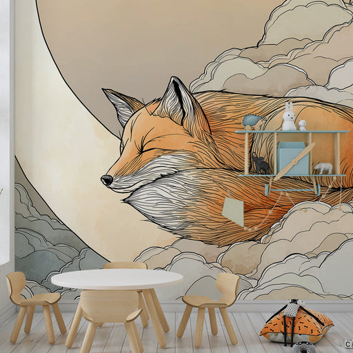 KidsWallTransformez la chambre de votre bébé en un havre de paix avec ce papier peint pour bébé représentant un adorable renard endormi sur des nuages moel...