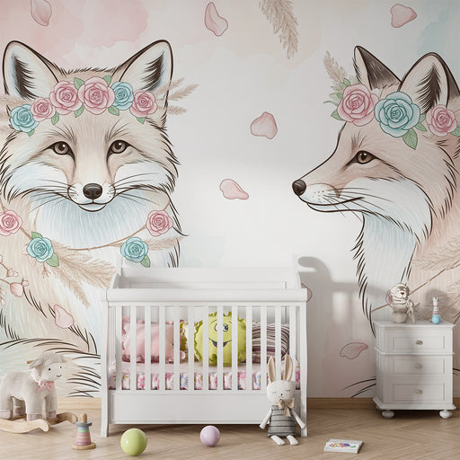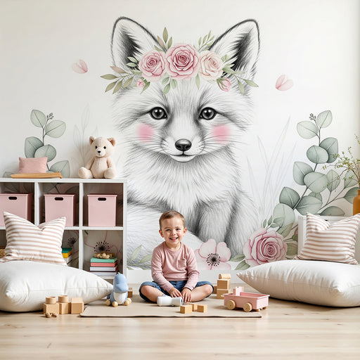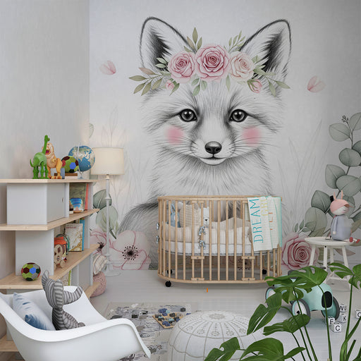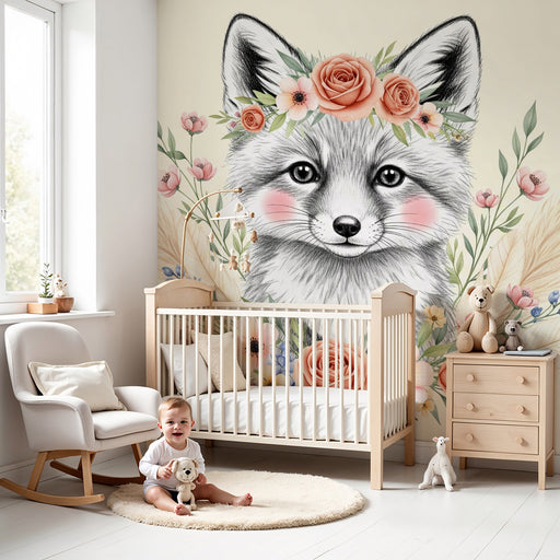 KidsWallTransformez la chambre de votre bébé en un doux refuge avec ce papier peint pour bébé représentant un adorable renard orné d'une couronne de fleurs...