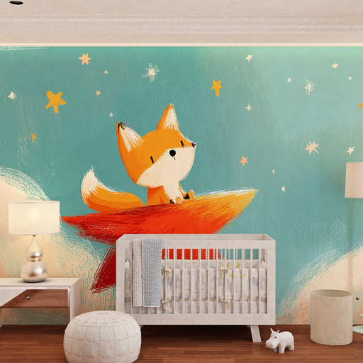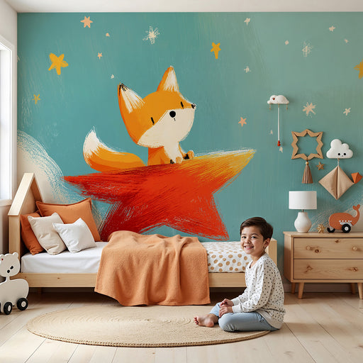 KidsWallEmbarquez votre bébé dans un voyage féerique avec ce papier peint pour bébé représentant un adorable renard perché sur une étoile rouge, contemplan...