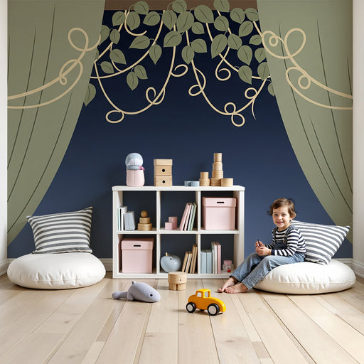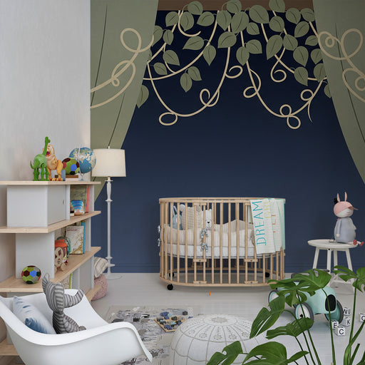 Afficher tous les détailsPapier peint chambre bébé | Rideaux et feuillage délicat