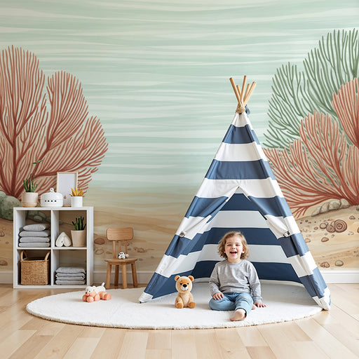 KidsWallPlongez dans un monde aquatique fascinant avec ce papier peint pour bébé inspiré des merveilles sous-marines. Des coraux aux teintes chaleureuses, ...