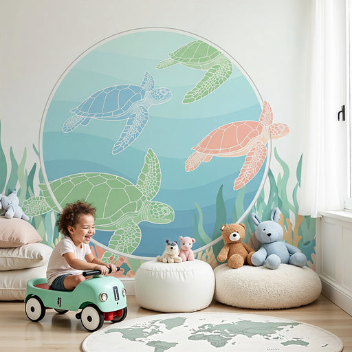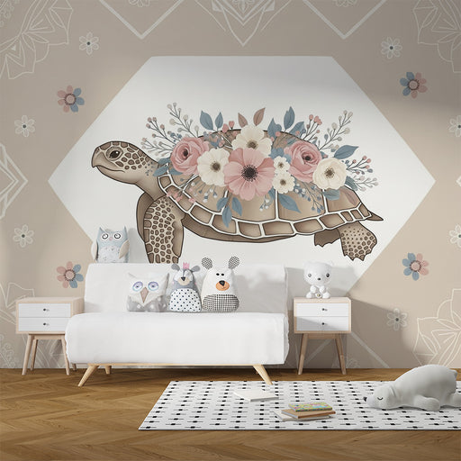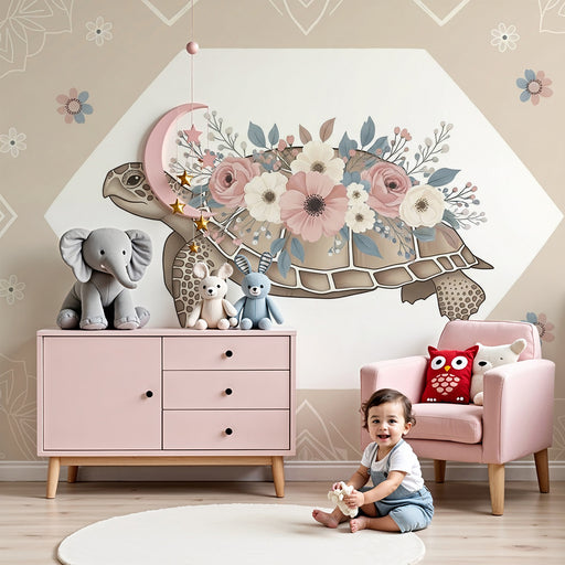 KidsWallTransformez la chambre de votre bébé avec ce papier peint pour bébé charmant, mettant en scène une tortue délicate ornée de fleurs colorées. Cette ...