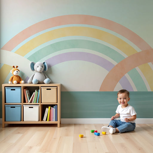 KidsWallRedessinez la chambre de votre bébé en un lieu trop mignon avec ce papier peint pour bébé enchanteur. Un magnifique arc-en-ciel pastel s'élève au-d...