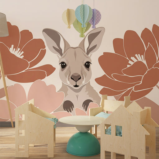 Afficher tous les détailsPapier peint chambre bébé | Un adorable kangourou entouré de fleurs délicates