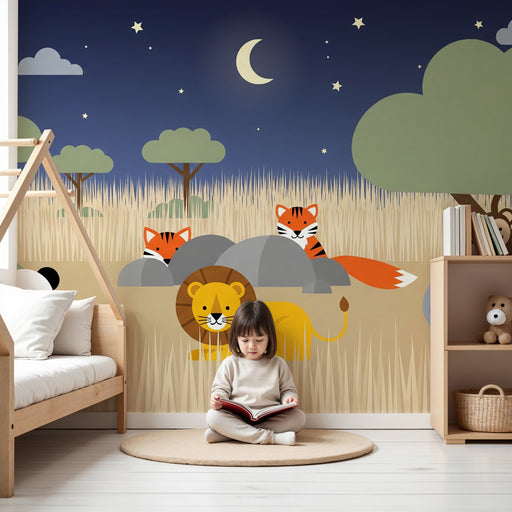 KidsWallTransformez la chambre de votre bébé en un véritable safari nocturne avec ce papier peint pour bébé apaisant et amusant. Sous un ciel étoilé, des a...