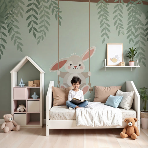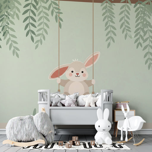 KidsWallTransformez l'univers de votre bébé avec ce papier peint pour chambre de bébé, mettant en scène un adorable lapin sur une balançoire. Ce décor ench...