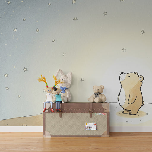 KidsWallEmmenez votre bébé vers un monde de rêve avec ce papier peint pour chambre de bébé. Illustré d'un adorable ourson contemplant un ciel étoilé, cet u...