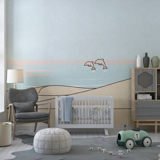 Afficher tous les détailsPapier peint chambre bébé | Plage et dauphins dans les dunes