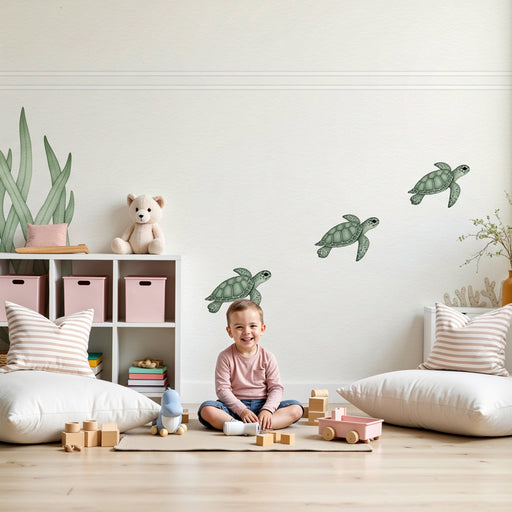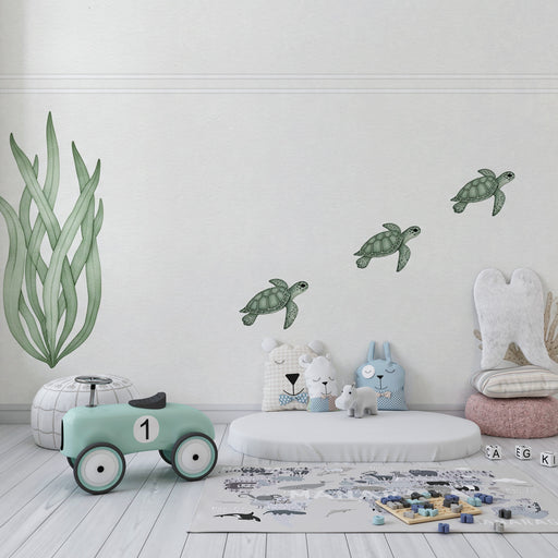 KidsWallTransformez la chambre de votre bébé en un petit coin de mer avec ce papier peint pour bébé délicat illustrant des tortues marines et de belles her...