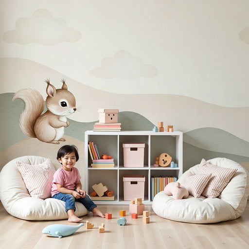 KidsWallTransformez la chambre de votre bébé en un espace cocooning avec ce papier peint pour bébé représentant un adorable écureuil sur des collines délic...