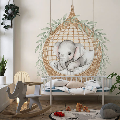 Afficher tous les détailsPapier peint chambre bébé | Élégant éléphant dans un panier suspendu