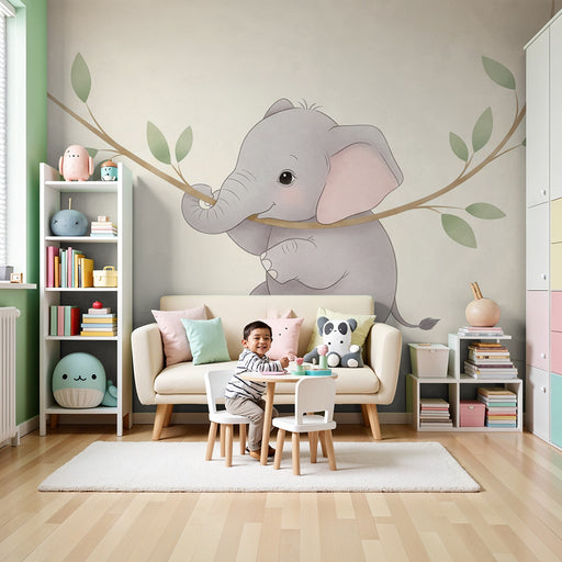 KidsWallTransformez la chambre de votre bébé en un havre de douceur avec ce papier peint pour bébé mettant en scène un adorable éléphant assis dans une coq...