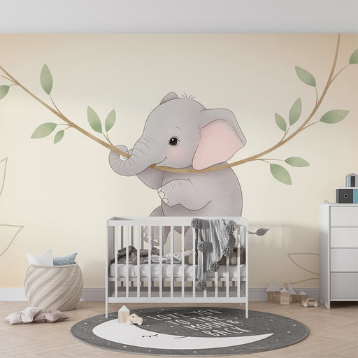Afficher tous les détailsPapier peint chambre bébé | Éléphant mignon avec branche