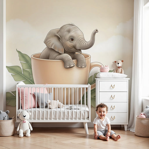 Afficher tous les détailsPapier peint chambre bébé | Éléphant mignon dans une tasse