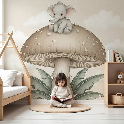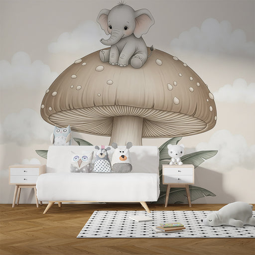 Afficher tous les détailsPapier peint chambre bébé | Éléphant mignon sur un champignon