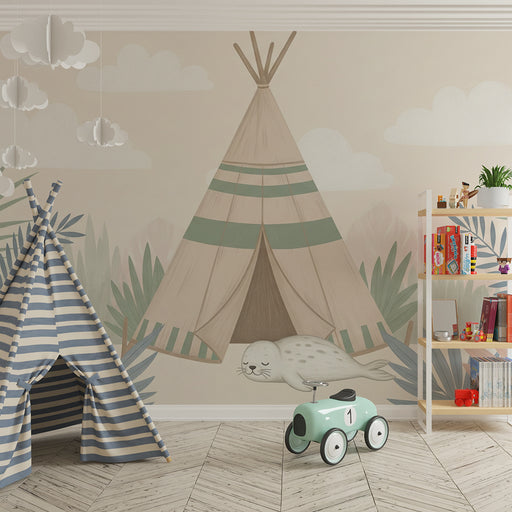 Afficher tous les détailsPapier peint chambre bébé | Tente et phoque endormi dans la nature
