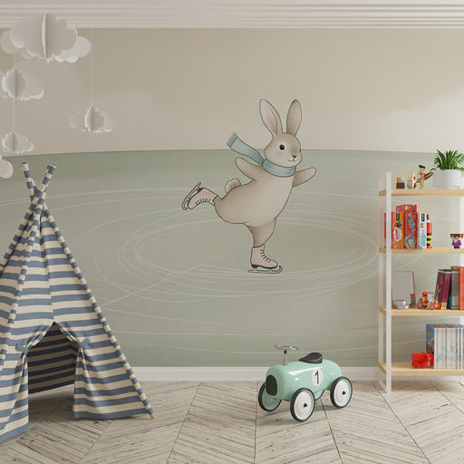 KidsWallTransformez la chambre de votre enfant en un univers féerique avec ce papier peint pour enfants représentant un adorable lapin patinant sur la glac...
