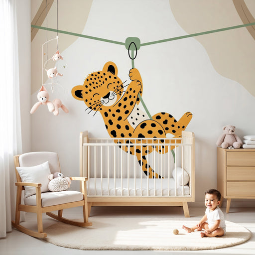 KidsWallTransformez la chambre de votre enfant en un véritable coin de paradis avec ce papier peint pour enfants illustrant une adorable panthère accrochée...