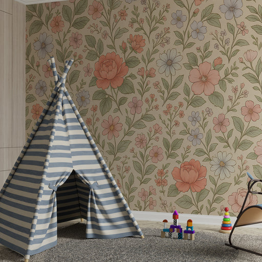 KidsWallAjoutez une touche de nature dans la chambre de votre enfant avec ce papier peint pour enfants, mettant en vedette un charmant paysage floral orné ...
