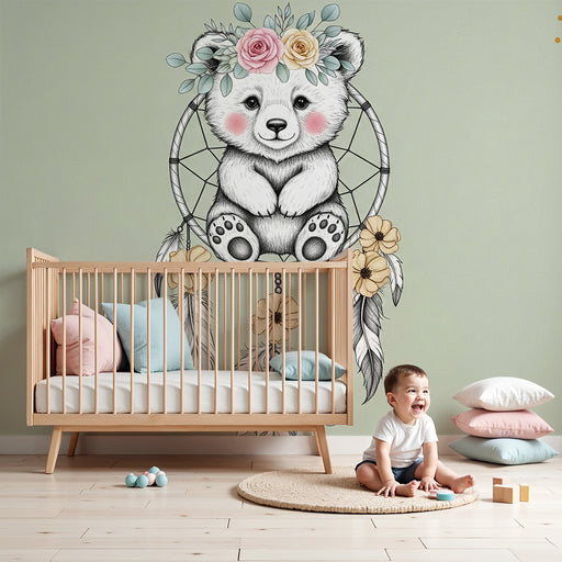 Afficher tous les détailsPapier peint chambre bébé | Panda rêveur et attrape-rêves