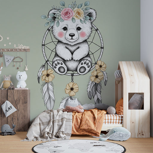 Afficher tous les détailsPapier peint chambre bébé | Ourson rêveur et attrape-rêves