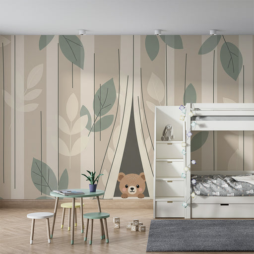 Afficher tous les détailsPapier peint chambre bébé | Ourson caché parmi les feuilles