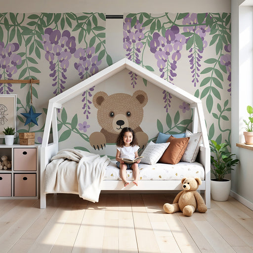 KidsWallTransformez la chambre de votre bébé en un espace de tranquillité avec ce papier peint pour bébé représentant un ourson espiègle émergeant d'une vé...