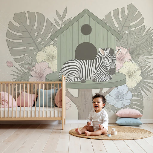 Papier peint chambre bébé | Zebra paisible dans un jardin tropical