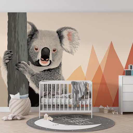 Transformez la chambre de votre enfant avec ce papier peint pour enfants mettant en vedette un adorable koala. Accroché à un arbre, ce petit marsup...