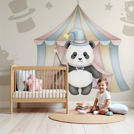 Papier peint chambre enfant | Panda magicien dans un cirque féerique