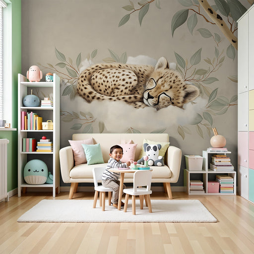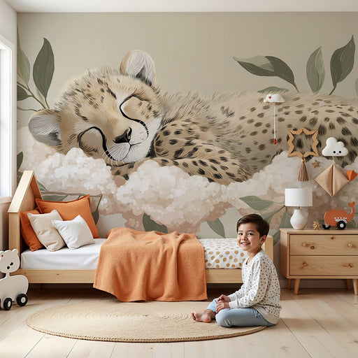 KidsWallTransformez la chambre de votre bébé en un doux cocon avec ce papier peint pour bébé représentant un adorable guépard endormi sur un nuage moelleux...