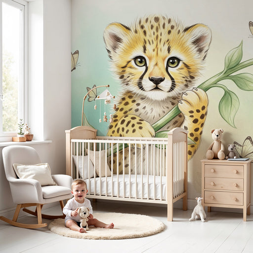 Afficher tous les détailsPapier peint chambre bébé | Petit guépard et papillons