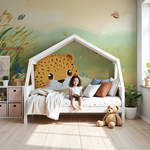 KidsWallAjoutez une touche de nature et de douceur dans la chambre de votre enfant avec ce papier peint pour enfants représentant un jeune guépard espiègle...