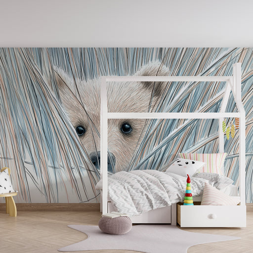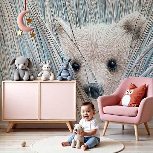 KidsWallTransformez la chambre de votre bébé en un havre de nature douce avec ce papier peint pour bébé représentant un adorable ourson émergeant des herbe...