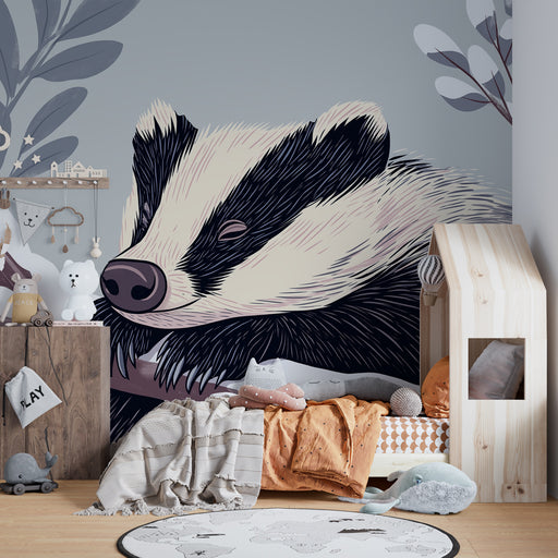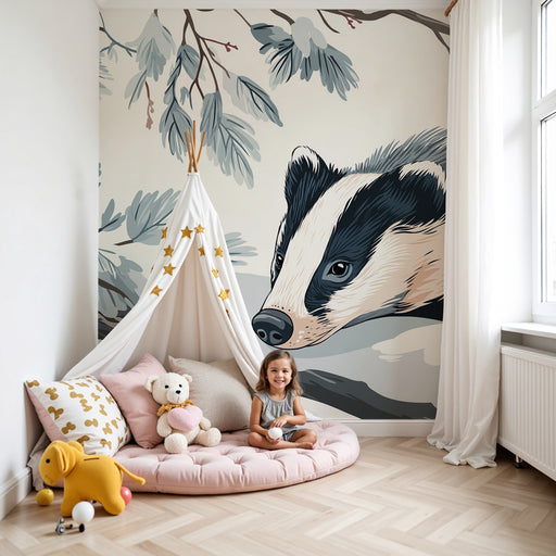 KidsWallTransformez la chambre de votre enfant en un havre de paix avec ce papier peint pour enfants illustrant un blaireau paisible se reposant sur une br...
