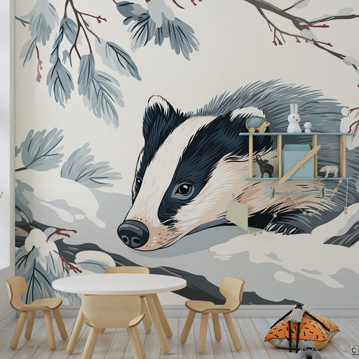 Afficher tous les détailsPapier peint chambre enfant | Blaireau sous la neige
