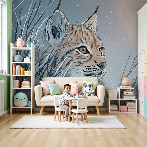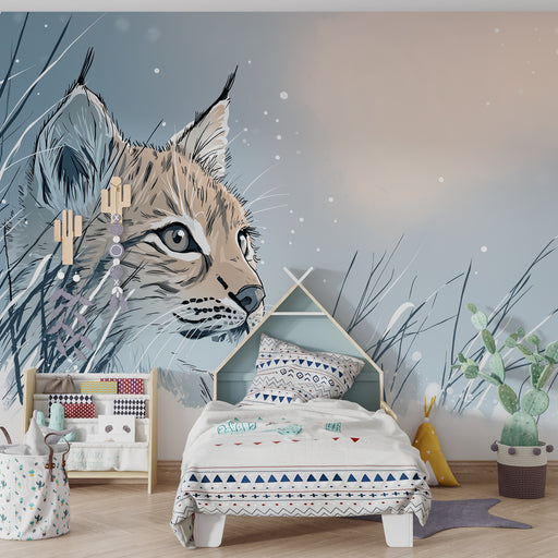 KidsWallAjoutez une touche de nature sauvage à la chambre de votre enfant avec ce papier peint pour enfants représentant un magnifique lynx dans un paysage...